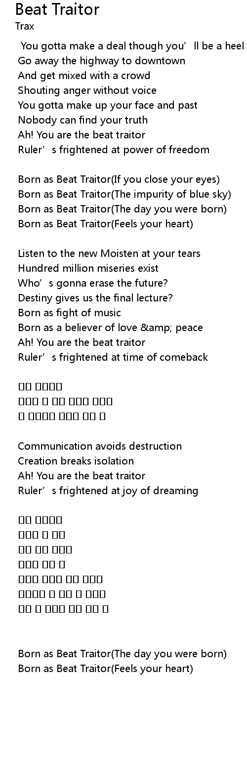 | Born as Beat Traitor Feels your heart | |