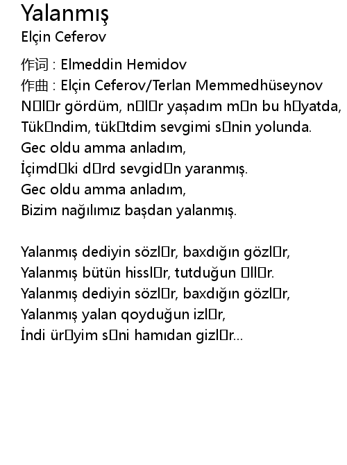 | Yalanm bü tü n hissl r, tutdu un ll r. | |
