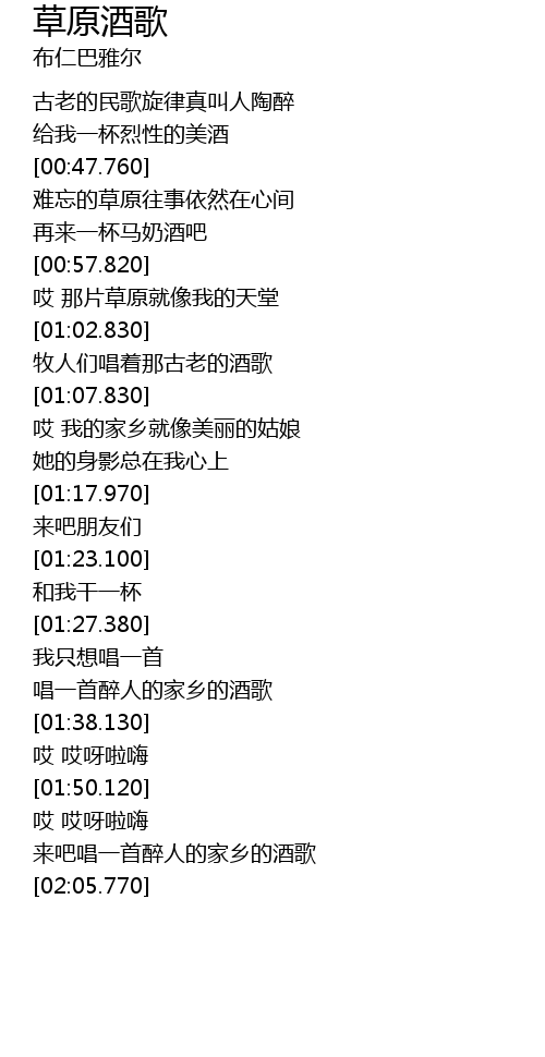 | [00:53.260] | 再来一杯马奶酒吧 |