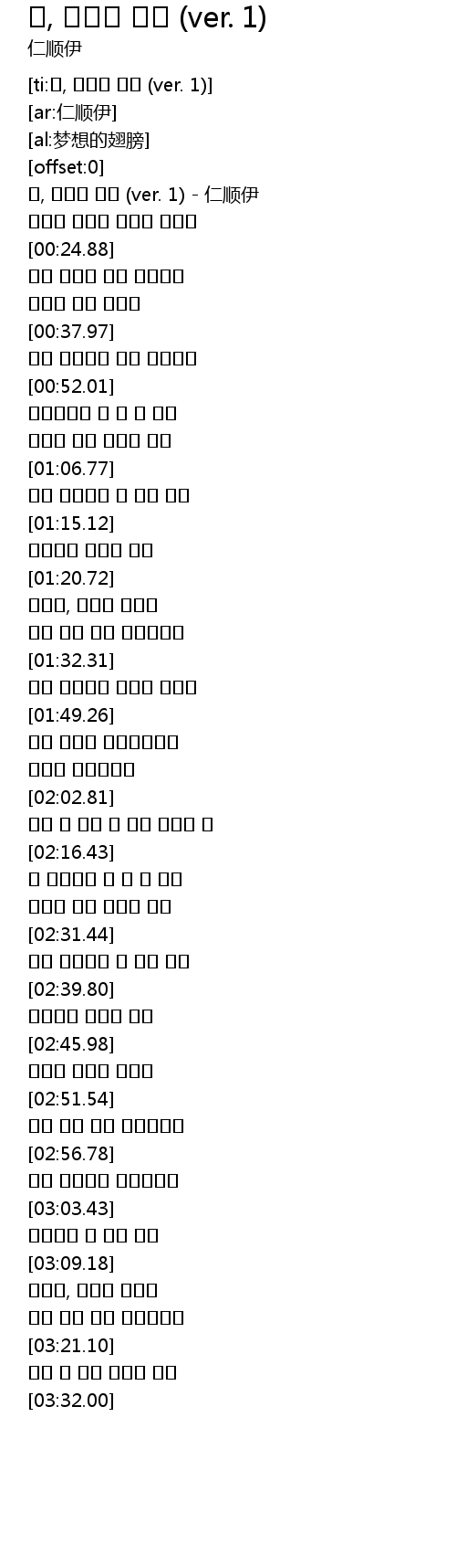 | [00:00.38] | 꿈, 날개를 달다 (ver. 1) - 仁顺伊 |