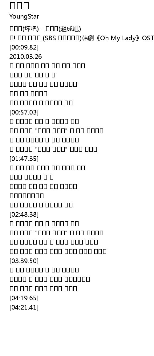 | [00:06.76] | ! SBS hán jù Oh My Lady OST |