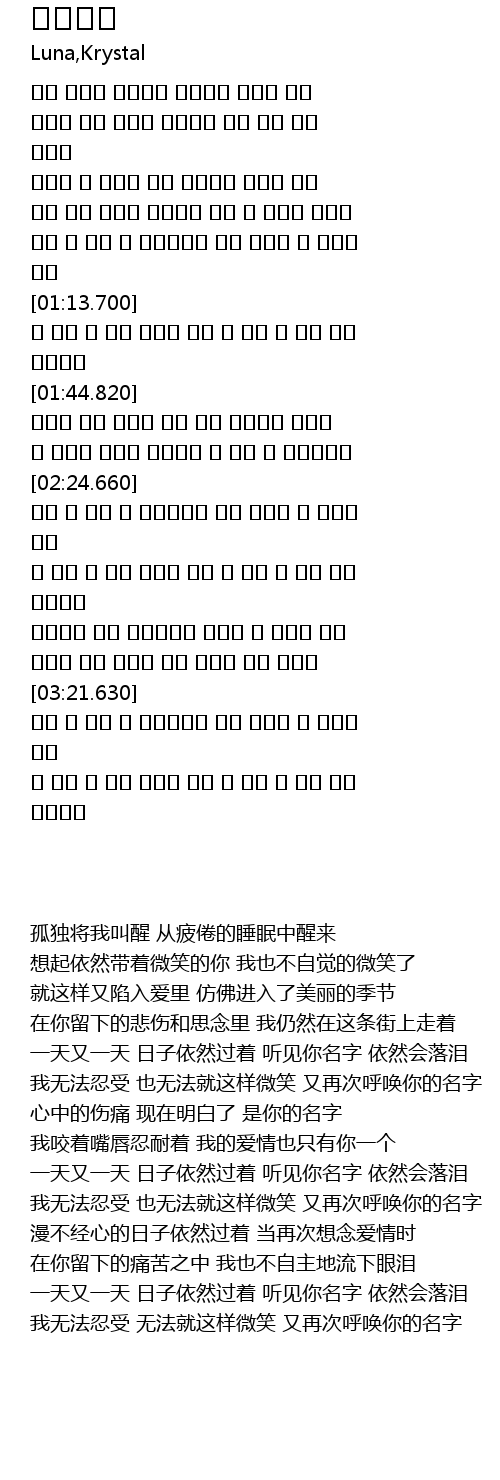 나 참을 수 없어 이렇게 웃을 수 없어 또 그대 이름 불러본다 |