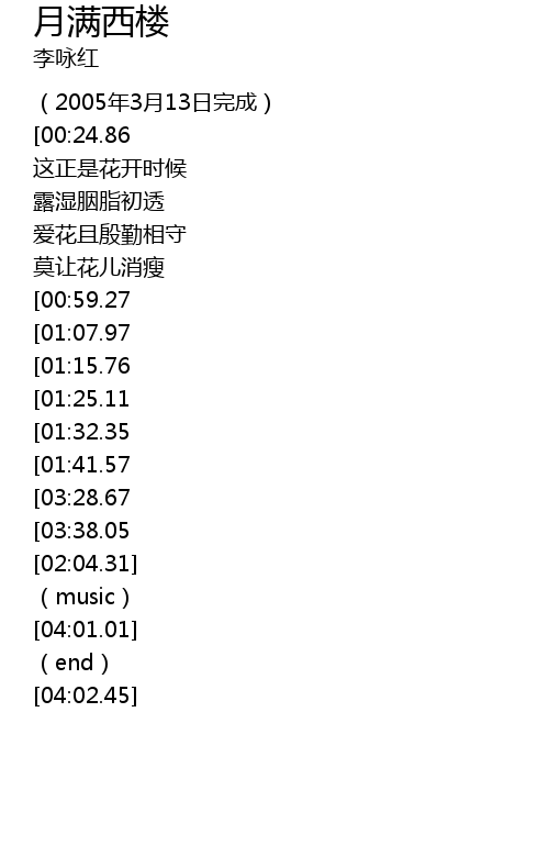 | [02:47.23][01:07.97] | 明月照满西楼 |