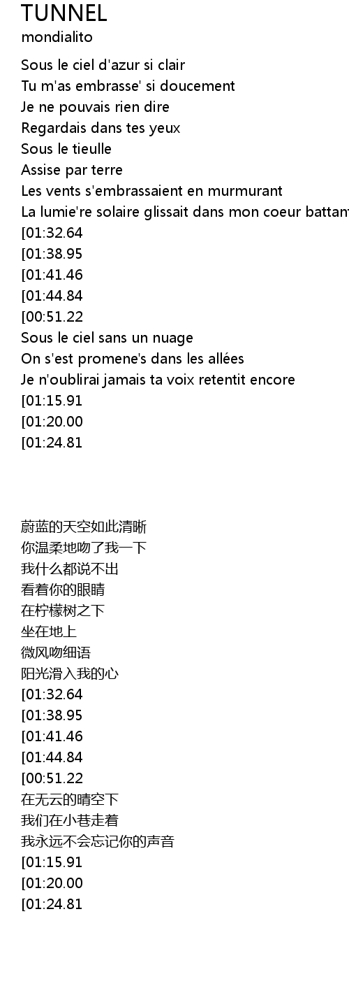 | [02:45.19][01:32.64][00:33.21] | Ton image s'effacait au fond du tunnel |