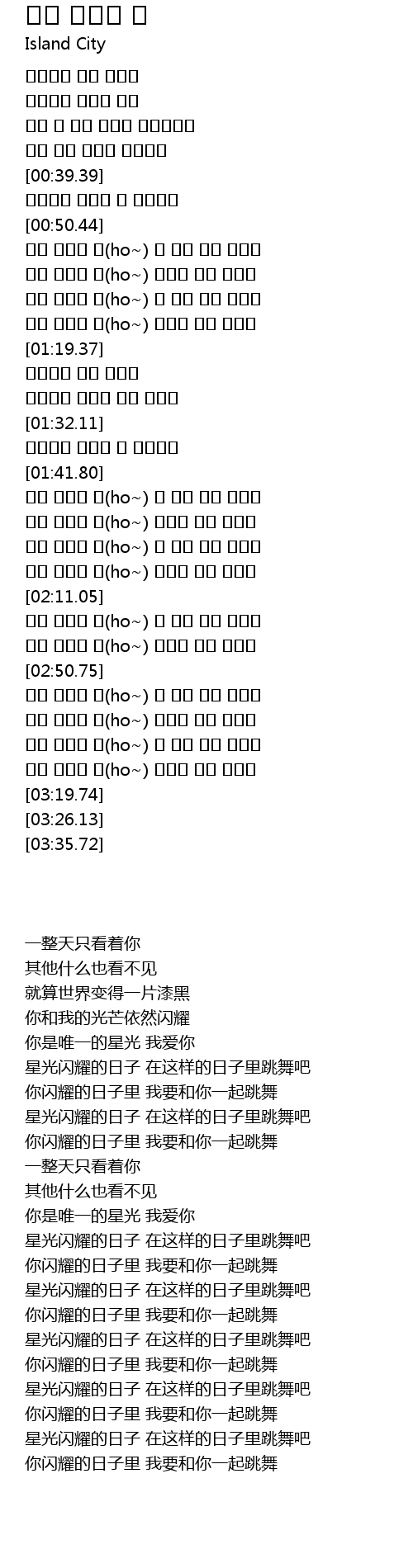 | [03:04.78] | 별이 빛나는 날(ho~) 이 날에 춤을 춰봐요 |