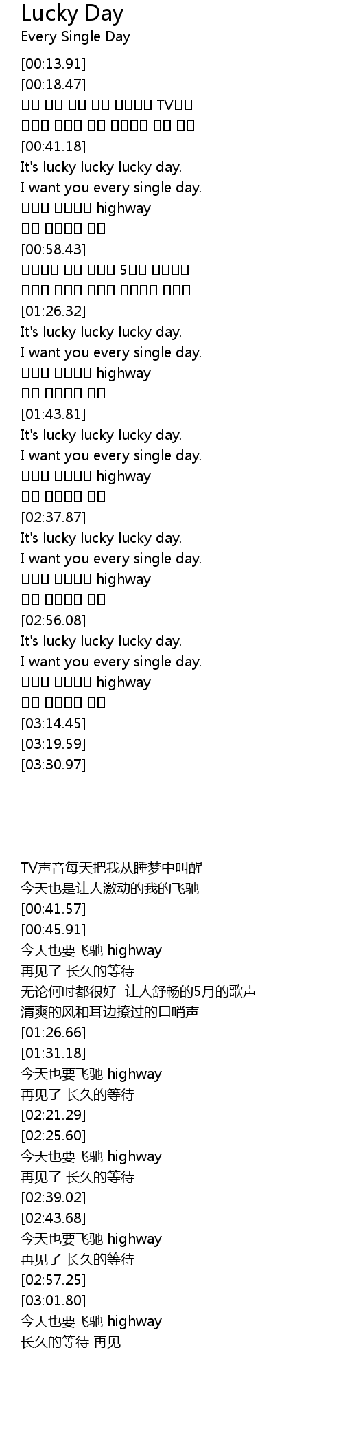| [00:41.57] | It' s lucky lucky lucky day. |