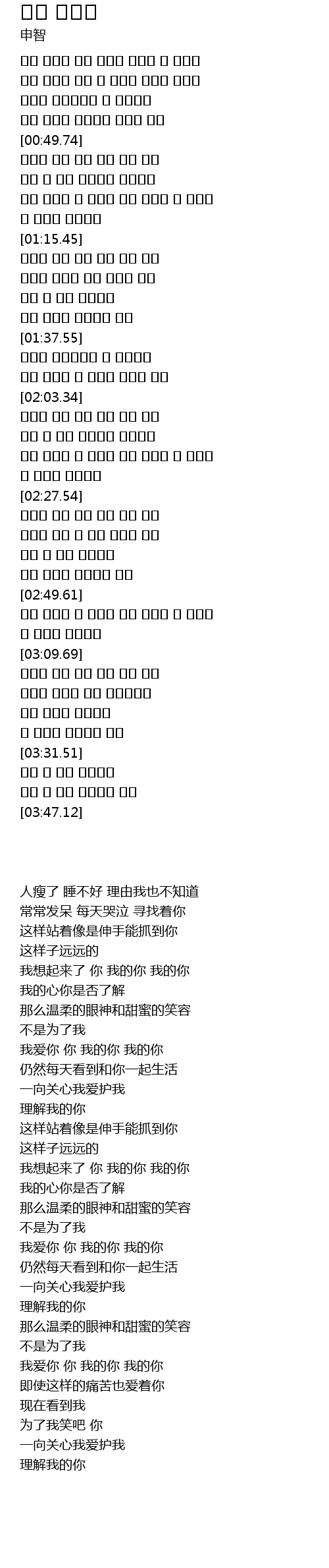 자꾸 멍하니 매일 난 울어요 그대만 찾아요 |