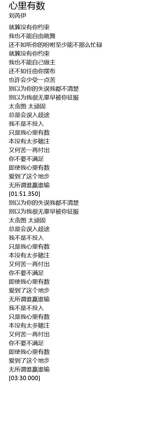 | [03:20.540] | jí shǐ wǒ xīn li yǒu shù |