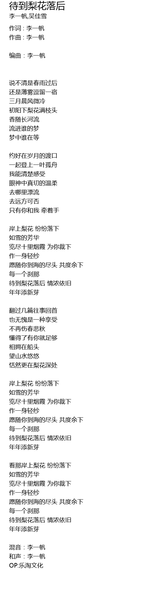 | 和声:李一帆 | |