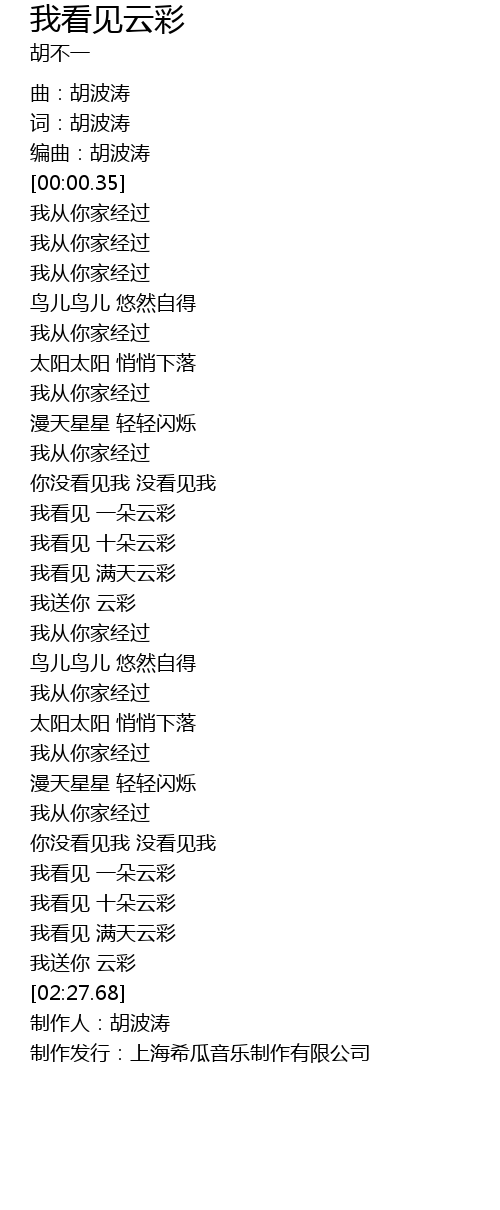 | [02:29.68] | 制作发行:上海希瓜音乐制作有限公司 |