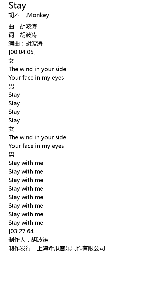 | [03:29.64] | 制作发行:上海希瓜音乐制作有限公司 |