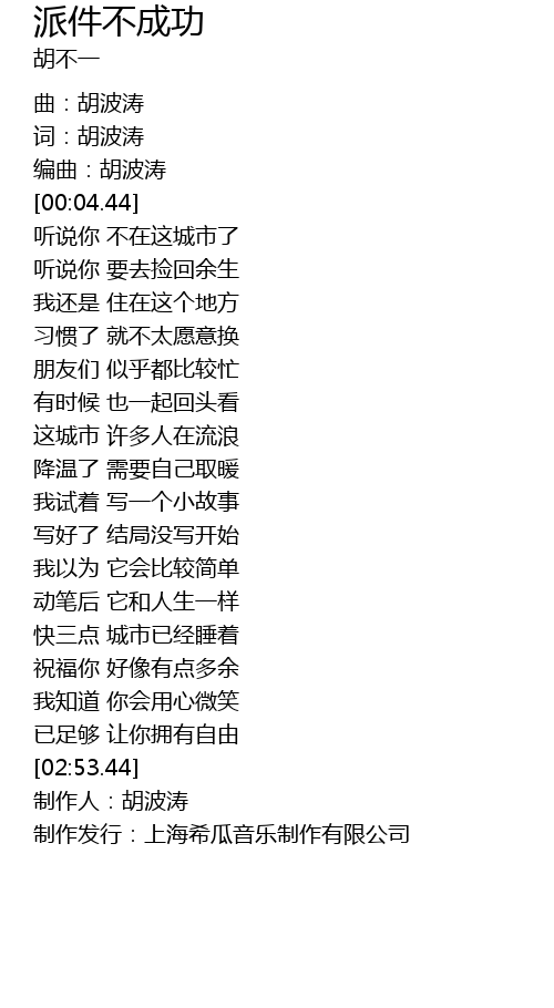 | [02:55.44] | 制作发行:上海希瓜音乐制作有限公司 |