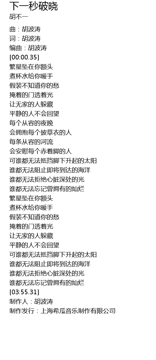 | [00:00.20] | 词:胡波涛 |