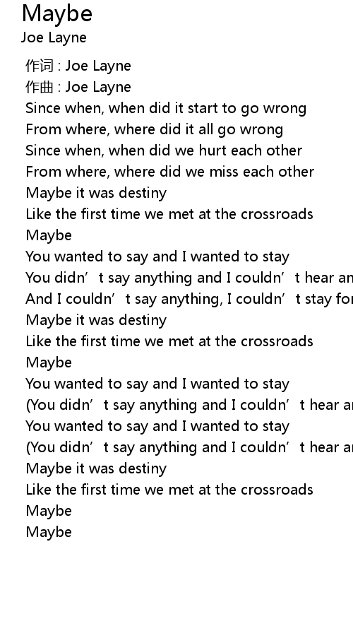 | [00:00.000] | zuò cí : Joe Layne |