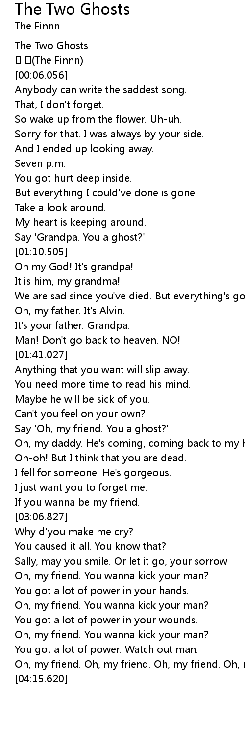 | [02:18.891] | Say ' Oh, my friend. You a ghost?' |