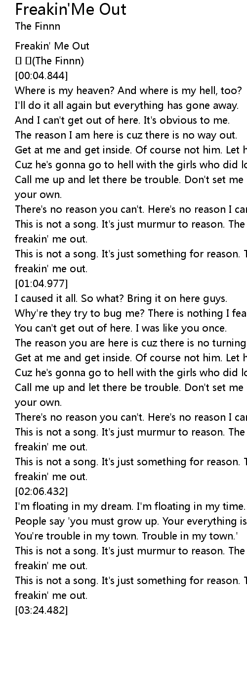 | [02:56.585] | This is not a song. It's just murmur to reason. The reason is freakin' me out. |
