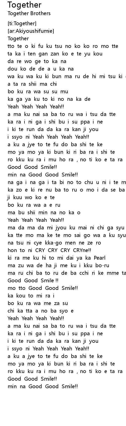 | [01:07.644] | i ssyo ni Yeah Yeah Yeah Yeah!! |