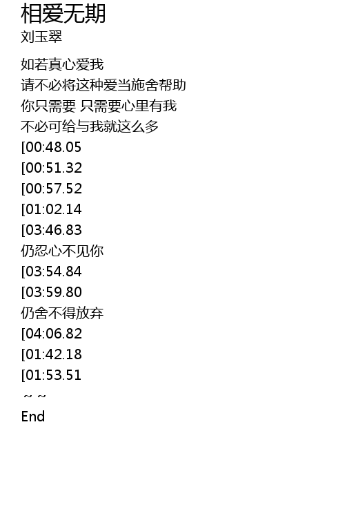 | [04:23.86][03:59.80][03:11.57][01:29.33] | 明明是相爱永无期 仍舍不得放弃 |