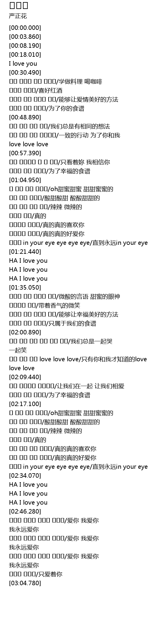 | [01:58.280] | 우리들 만의 레시피/只属于我们的食谱 |