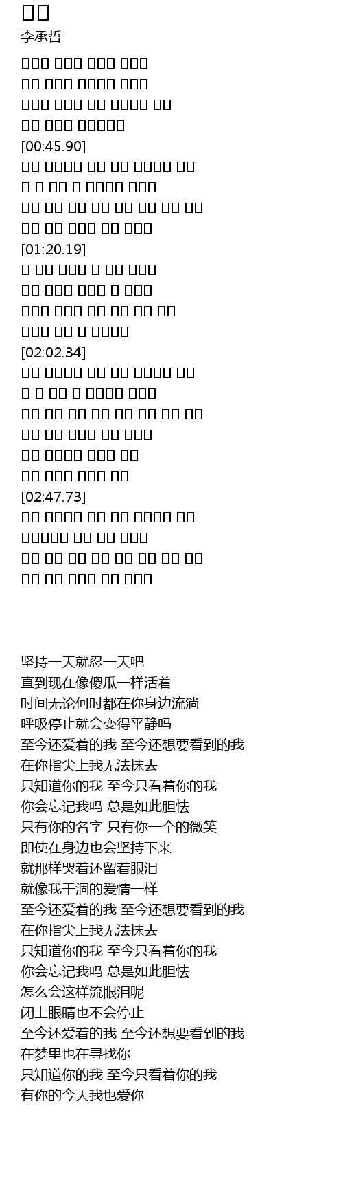 시간은 언제나 니가 있던때로 흘러 |