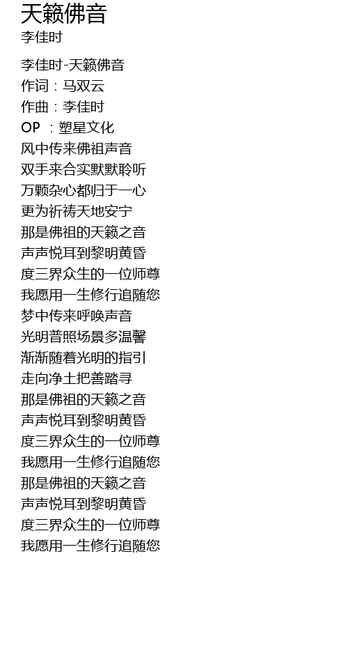 | [03:32.36] | nà shi fó zǔ de tiān lài zhī yīn |