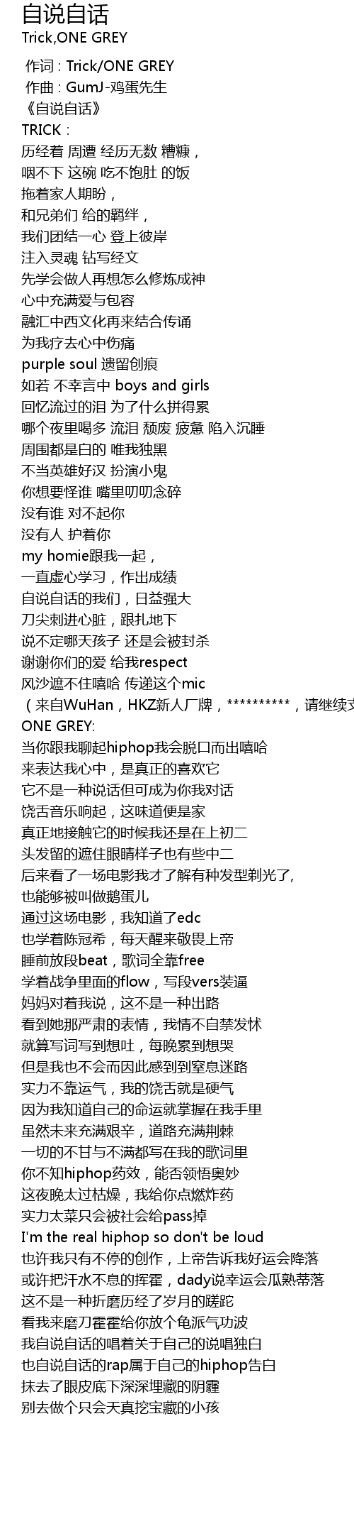 | [02:37.005] | yě zì shuō zì huà de rap shǔ yú zì jǐ de hiphop gào bái |