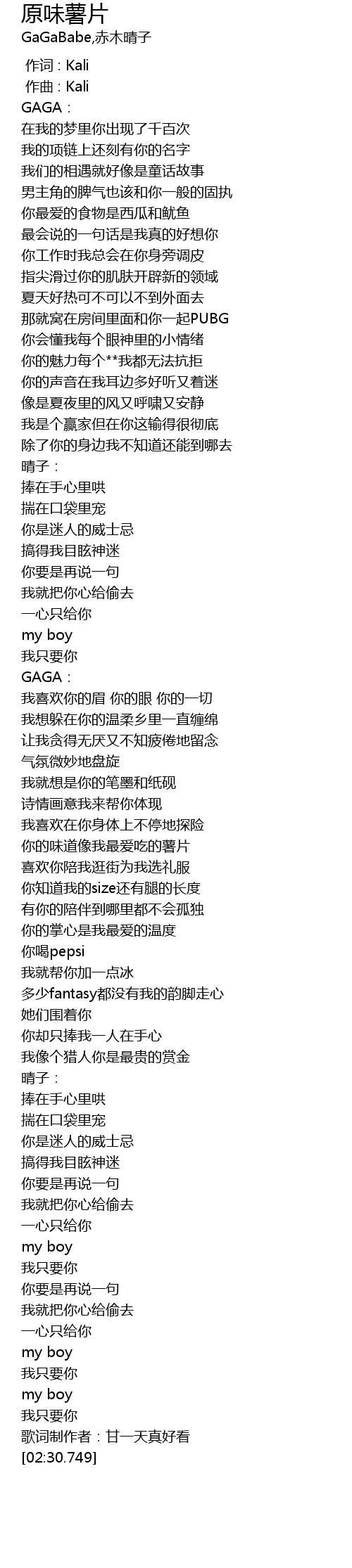 | [01:32.102] | 你的味道像我最爱吃的薯片 |