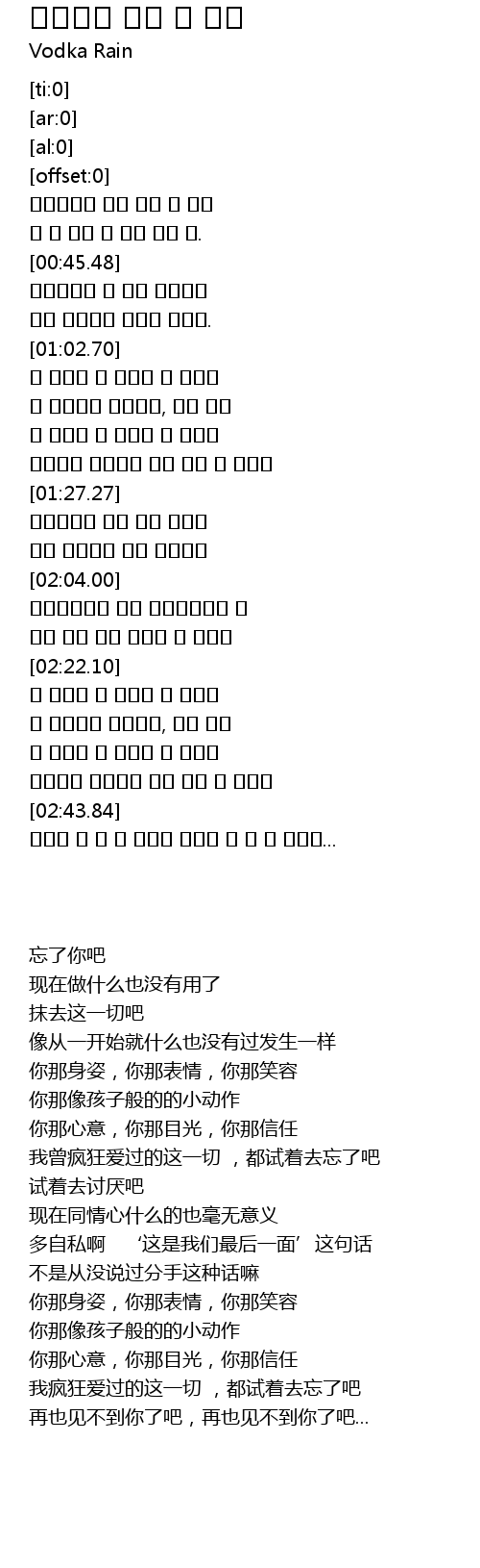 | [02:35.56] | 미치도록 사랑했던 모든 것을 다 지우렴 |