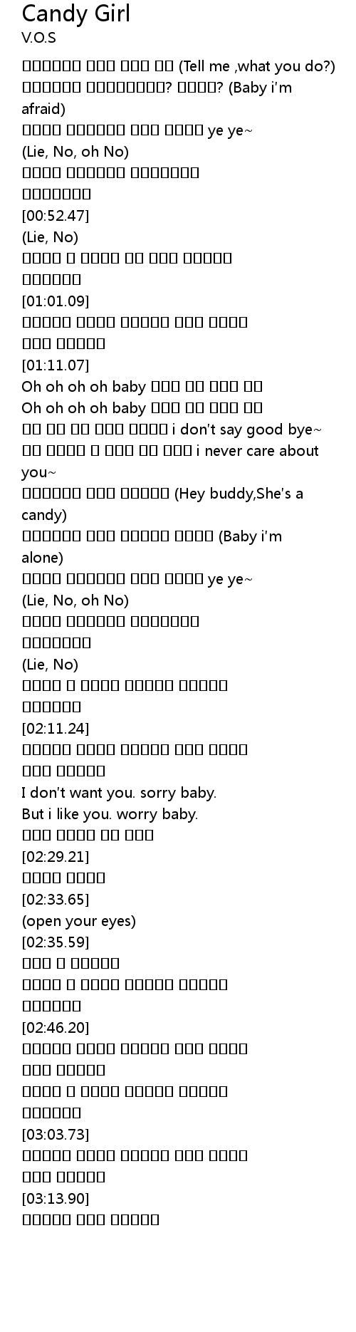 | [01:11.63] | Oh oh oh oh baby 니자신 마저 속이지 말아 |
