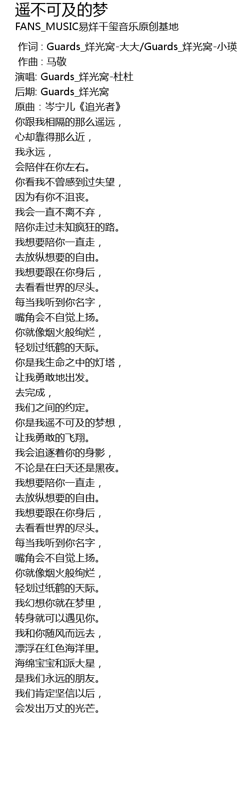 | [00:00.000] | 作词 : Guards_烊光窝-大大/Guards_烊光窝-小瑛 |
