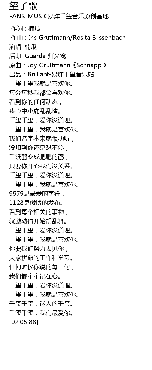 | [02:02.13] | 千玺千玺,我们最爱你。 |