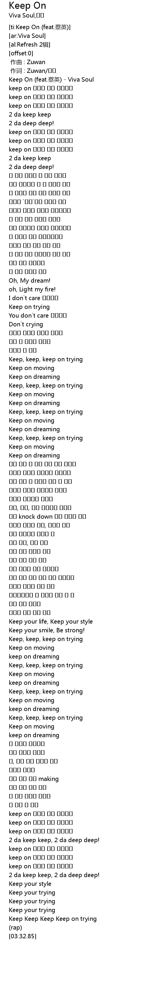 | [00:01.36] | Keep On (feat.蔡英) - Viva Soul |