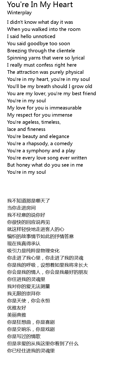 You're in my heart, you're in my soul |