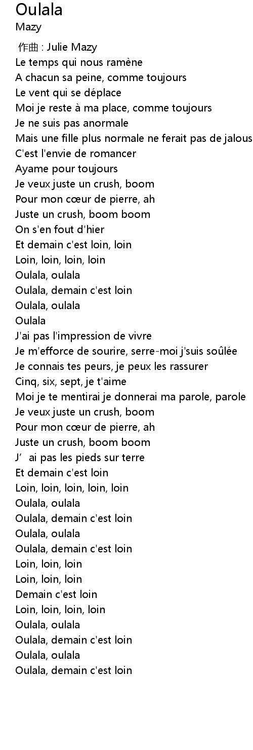 | [00:00.000] | zuò qǔ : Julie Mazy |