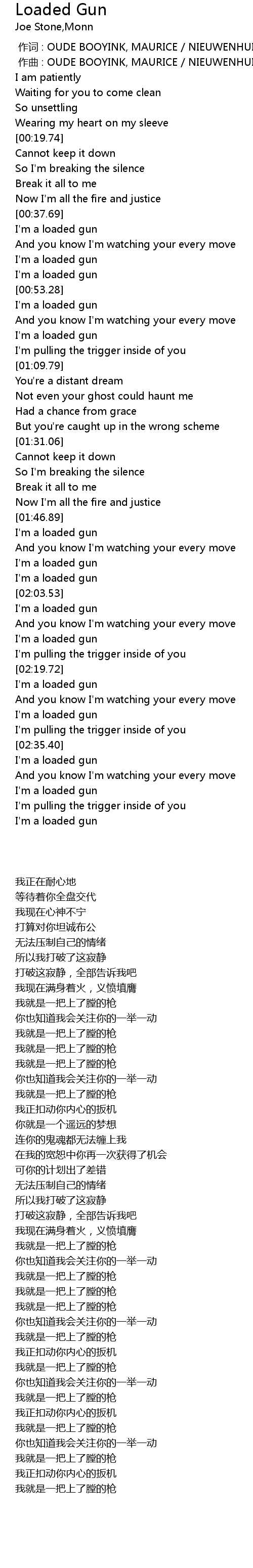 | [00:38.45] | I'm a loaded gun |