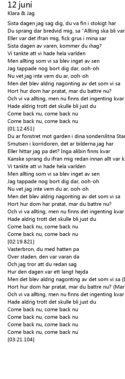 Men det blev aldrig nagonting av det som vi sa (Det blev aldrig) |