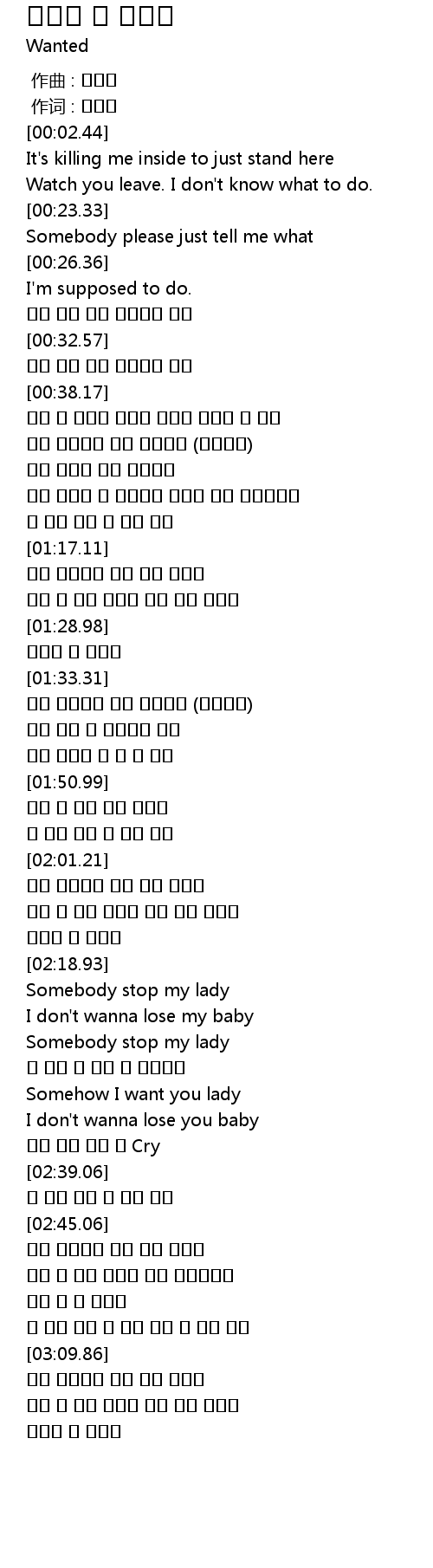 | [02:35.68] | 이젠 내겐 남는 건 Cry |