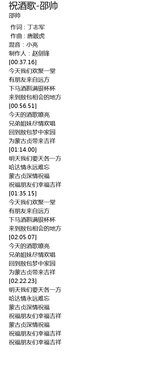 | [02:18.21] | 为蒙古贞带来吉祥 |