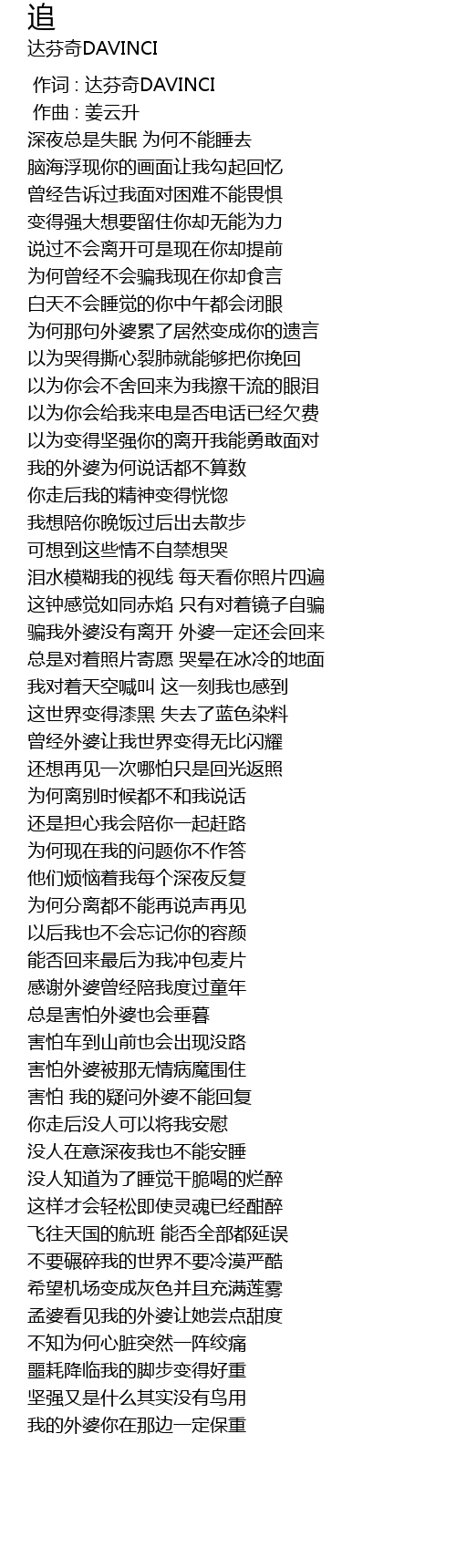 | [01:49.183] | 害怕 我的疑问外婆不能回复 |
