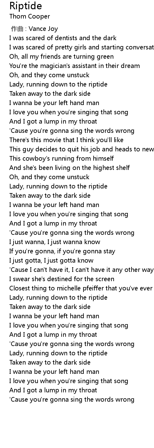 | [00:00.000] | zuò qǔ : Vance Joy |