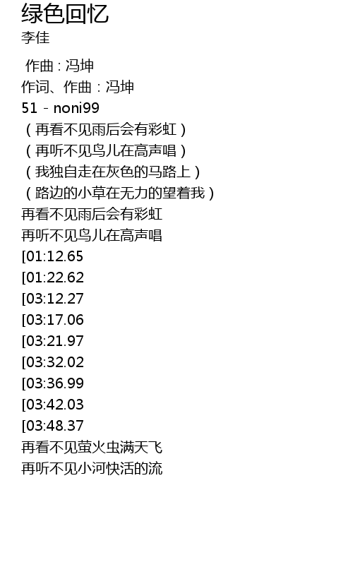 | [04:28.29][03:48.37][02:08.83] | 找回绿色的回忆 |