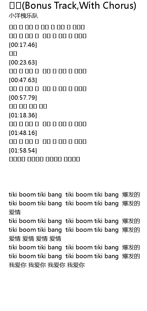 | [01:41.71] | 티키 붐 티키 뱅 티키 붐 티키 뱅 터지는 |