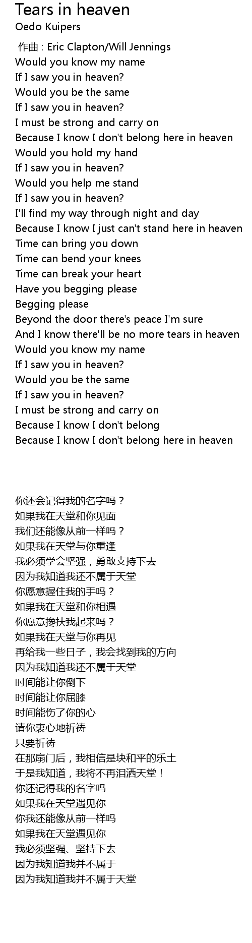 | [03:15.54] | And I know there' ll be no more tears in heaven |