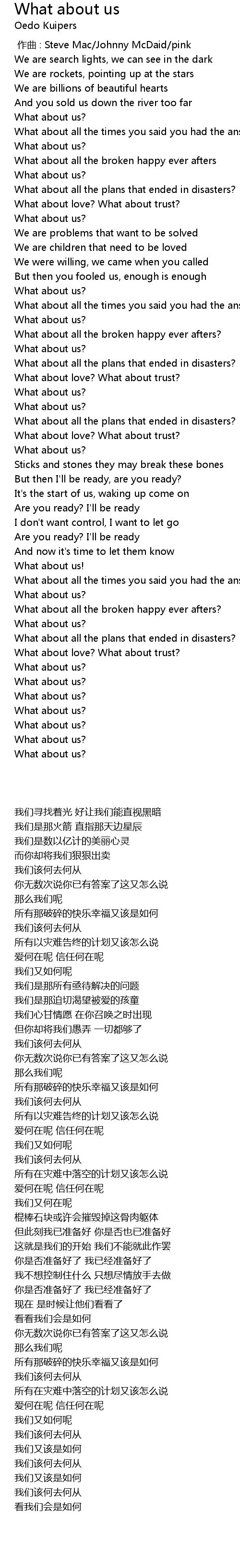 | Song | What about us |