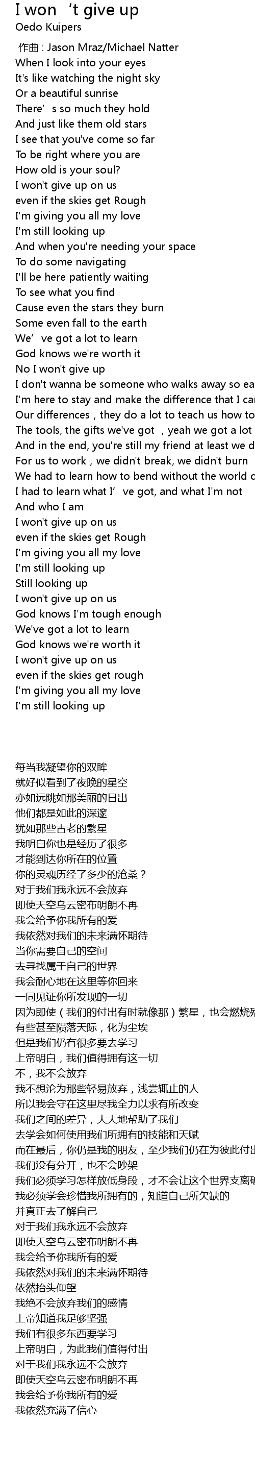 | Song | I won‘t give up |