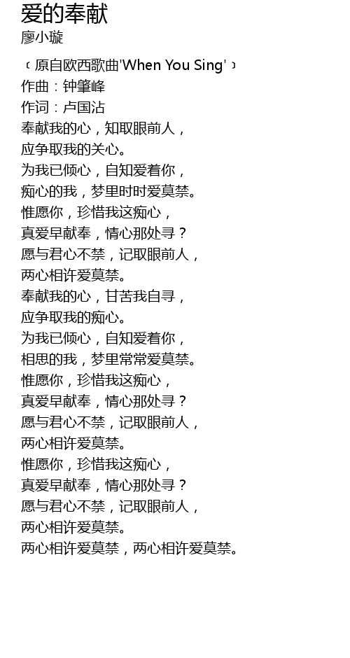 | ﹝原自欧西歌曲'When You Sing'﹞ | |