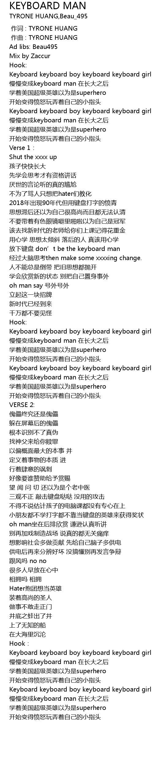 | [01:02.548] | fang xia jian pan don' t be the keyboard man |