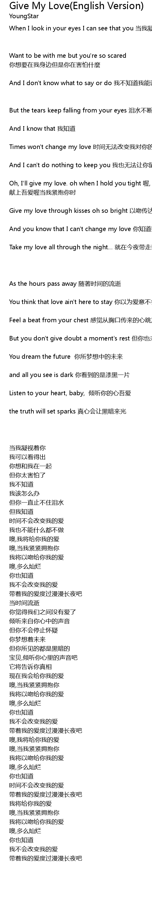 | Oh, I'll give my love. oh when I hold you tight 喔, 献上吾爱喔当我紧抱你时 | |