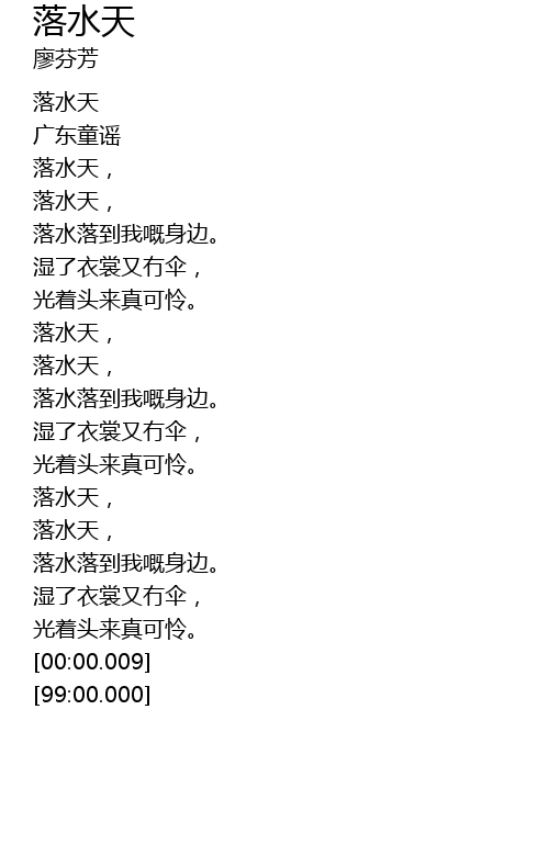 | [00:18.38] | luo shui luo dao wo kai shen bian. |