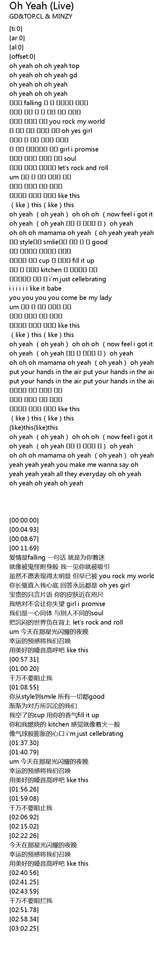 | [00:04.93] | oh yeah oh oh yeah gd |